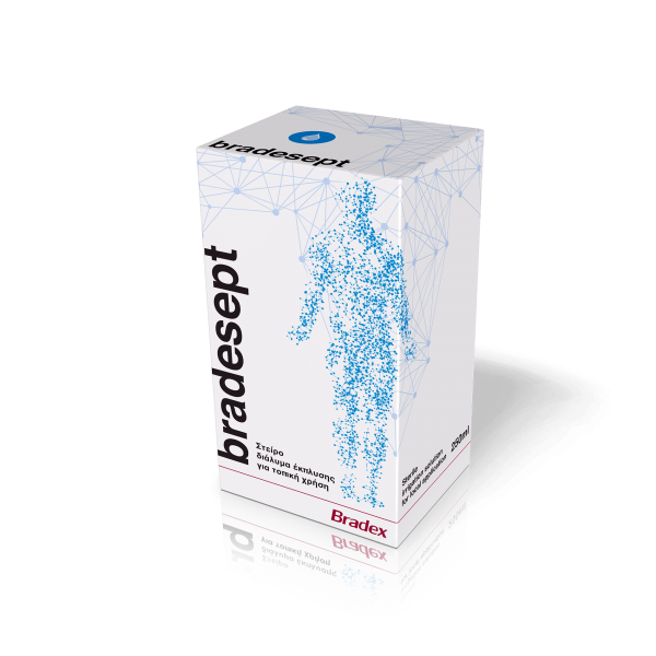 Το BRADESEPT είναι ένα στείρο διάλυμα για τοπική χρήση ιδανικό για τον καθαρισμό και την έκπλυση κάθε είδους τραύματος όπως εκδορές, έλκη κατάκλισης, εγκαύματα 2ου και 3ουβαθμού καθώς και έλκη διαβητικού ποδιού.
